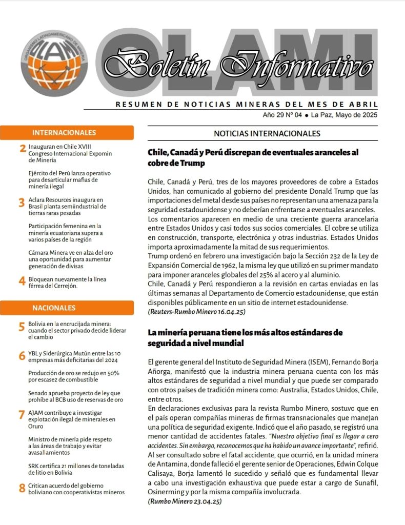 Boletín OLAMI Abril 2025: Cámara Minera Dominicana destaca auge del oro como motor clave para la economía